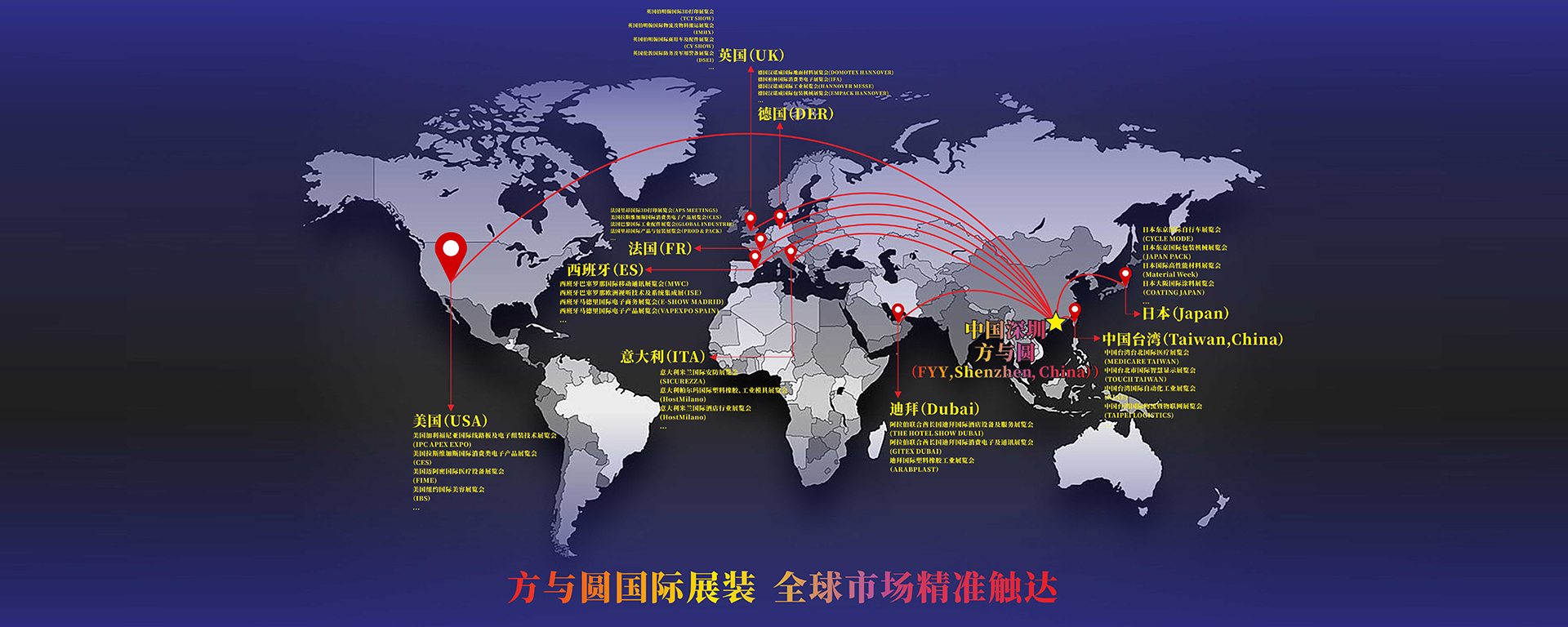 方與圓已構(gòu)建覆蓋海外多個會展城市的服務網(wǎng)絡,為企業(yè)提供從策略設計到落地運營的一站式解決方案。讓我們用專業(yè)展覽語言,助您在世界的每個舞臺綻放品牌光芒。